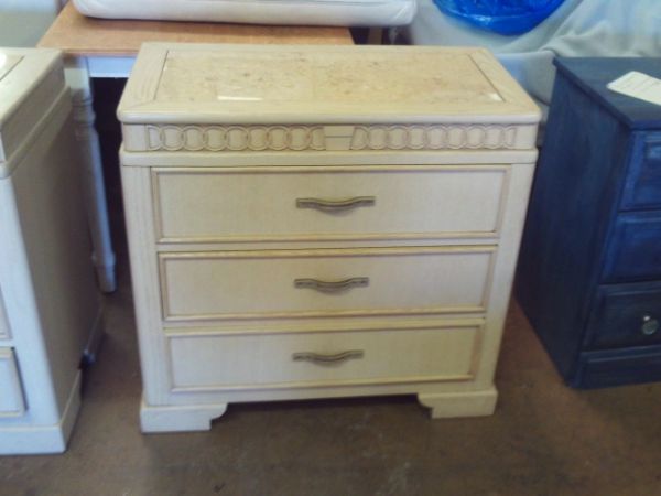 32'' x 17'' x 31''H Three Drawer Chest/Nightstand w/Marble Inset Top.
