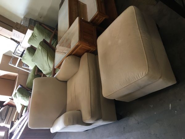 SET OF 2 pcs -- RALPH LAUREN. Arm Chair and ottoman plain beige.