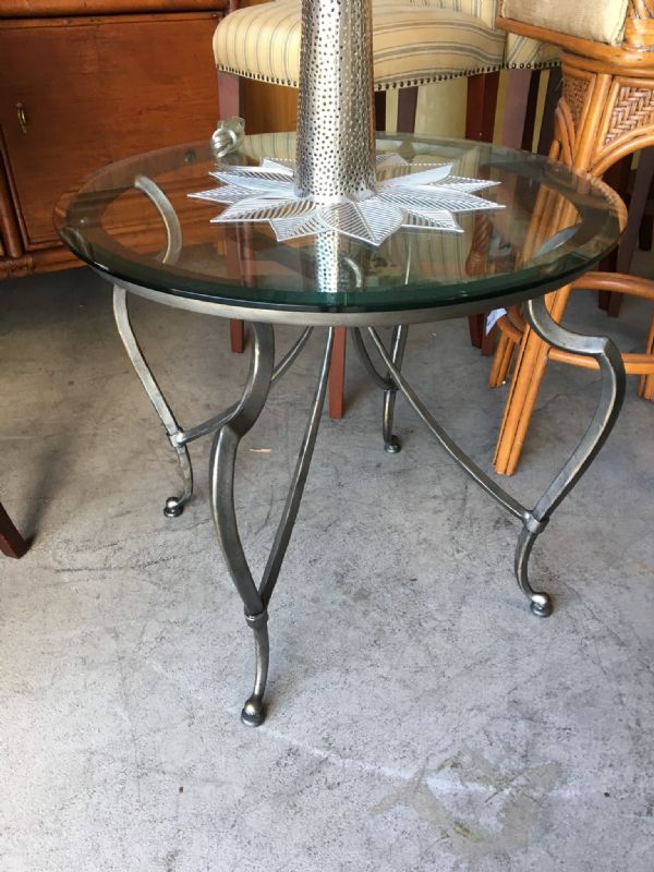 Round Glass Top Metal End Table.