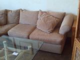 MCCREARY MODERN 3 psc. L-shape Sofa sectional w/rolled arms, beige herringbone fabric.