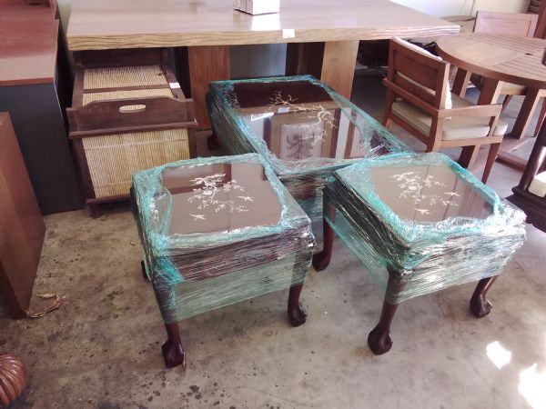SET OF 3 - Rosewood inlay pearl Coffee Table and 2 End Tables.