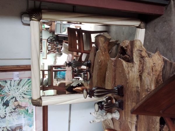 Large Bamboo frame mirror, off white .