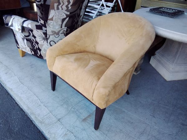 Modern round arm chair suede .