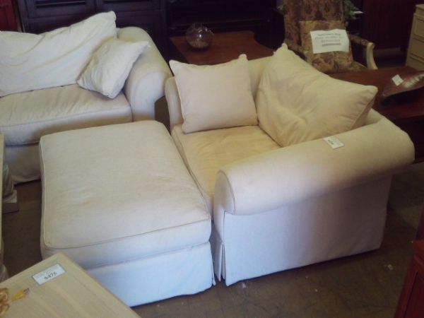 MCCREARY MODERN Chair Rolled Arm Over Sized off white fabric, skirt around base.