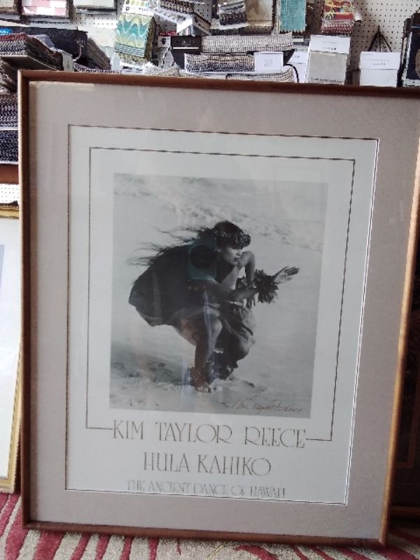 Picture. Kim Taylor Reece. Dancing Hawaiian Girl. Koa Frame..