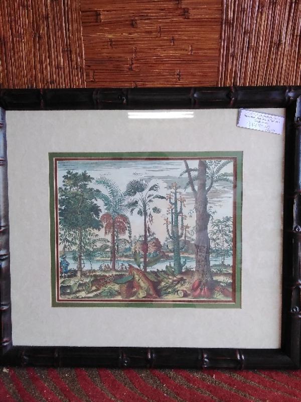 Tropical fruit trees illustrated picture in solid frame 29x26 .
