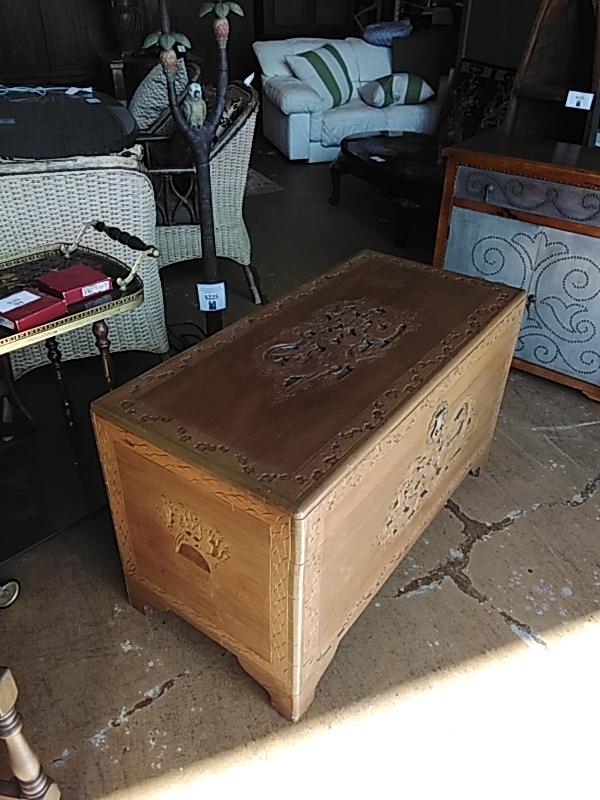 Wood Chest with Oriental style carving decoration.
