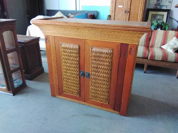 2 Door Cabinet with carved wood decoration.