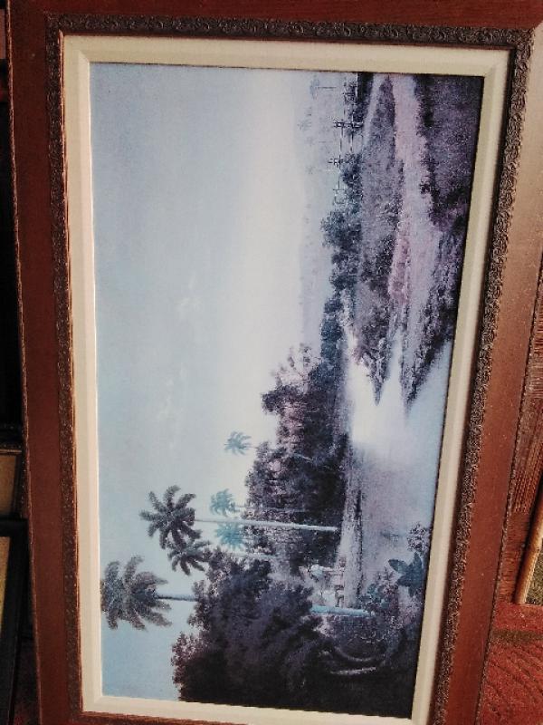 Framed picture ''Palm trees and two men'', 33 1/2 x 54 1/4.
