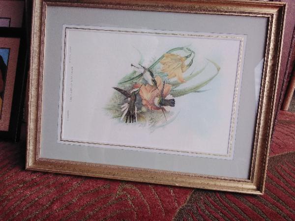 Framed picture ''Three green hummingbirds''.
