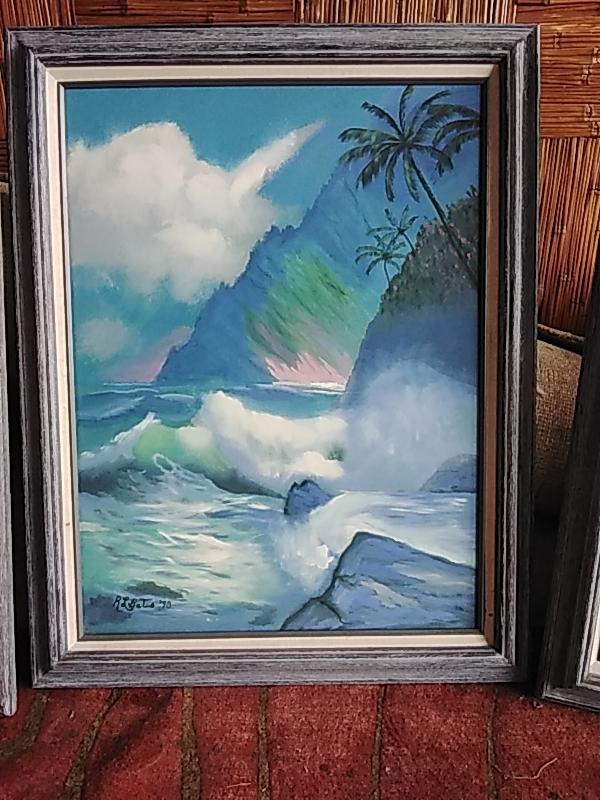 Original Oil Painting By Robert L. Bates Coastal Palm Trees.