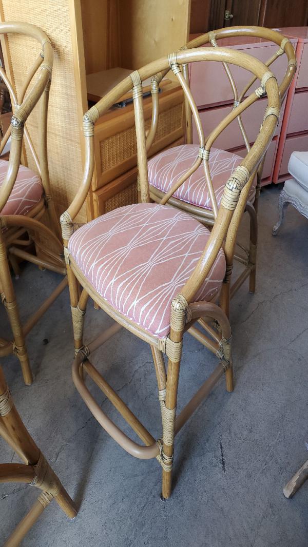 Barstool Rattan with arms and upholstered seat. Made in France. .