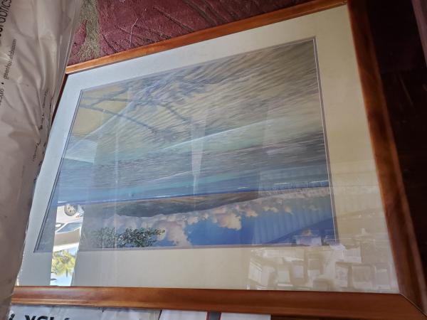 Signed Print Royal Sea Cliff Resort. palm tree shadows on the water..