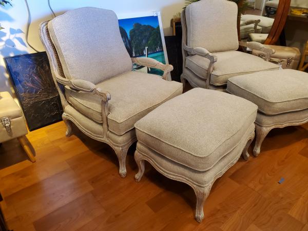 New Upholstery Kravet Upholstery LOUIS XV Set of Arm Chair and Ottoman. New Upholstery Kravet Fabric.