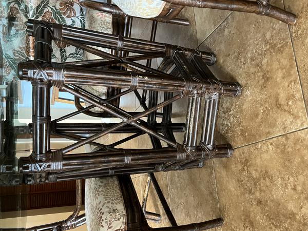 Rattan dining table 48'' round 3/4'' thick glass.