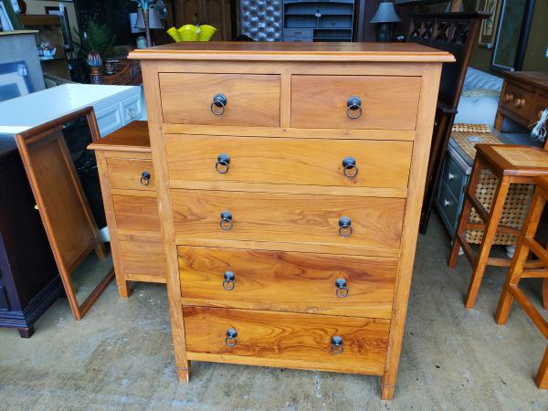 6 drawer Tall boy Wood Dresser .