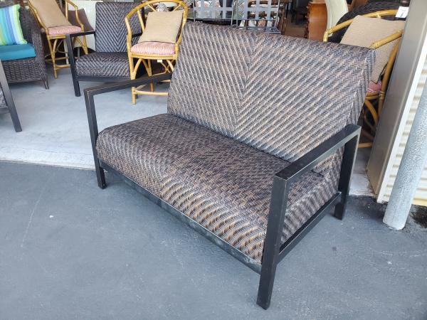 Outdoor Loveseat Padded woven wicker, metal frame.