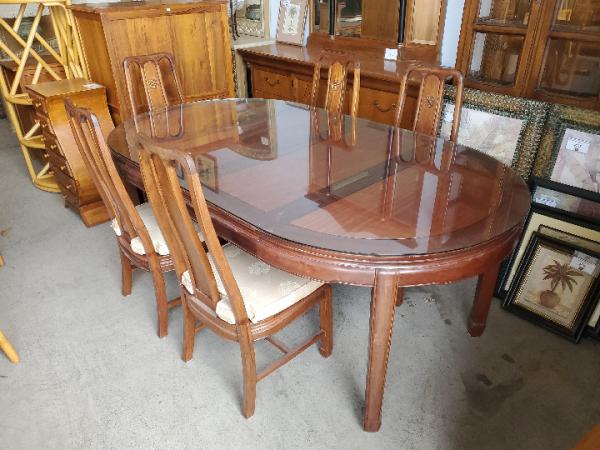 ROSE WOOD Dining Set Table with glass and 5 chairs.