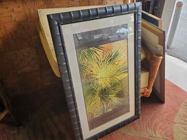 TOMMY BAHAMA Taller Painting - Palm Leafs - Dark Bamboo Frame.