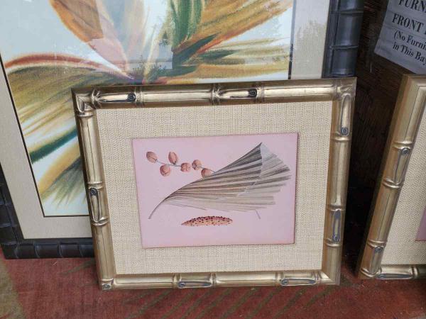 Picture - Tropical Motif - Gold Bamboo style frame .