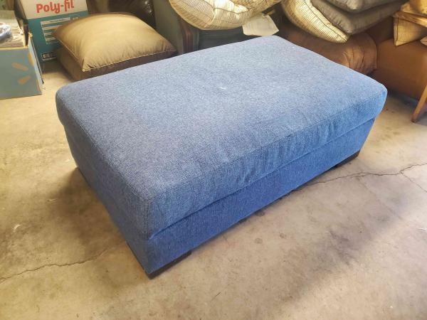 Storage Ottoman on wheels Blue fabric. Top opens..