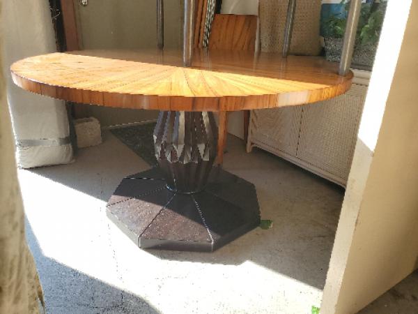 Round Dining Table Heavy Duty, Wood pattern top, Pineapple accent base.