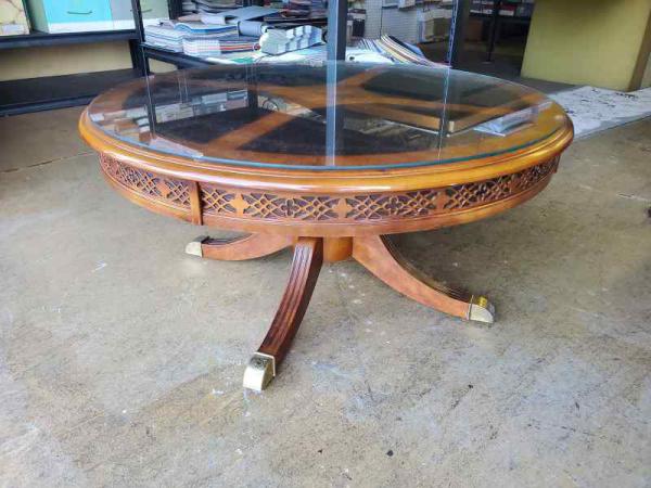 Round Wood coffee Table with glass Top 35''.