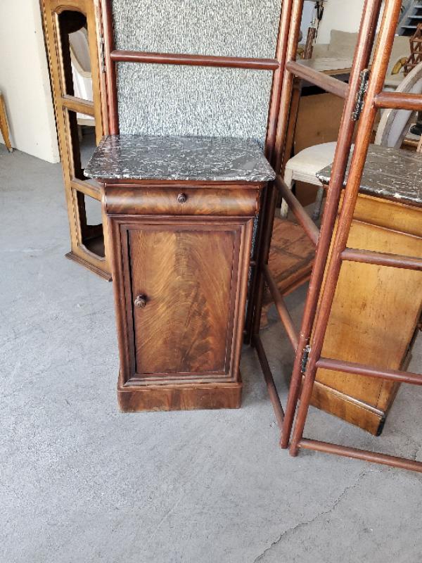 Bed Side Table with marble top w/ door, shelves inside.
