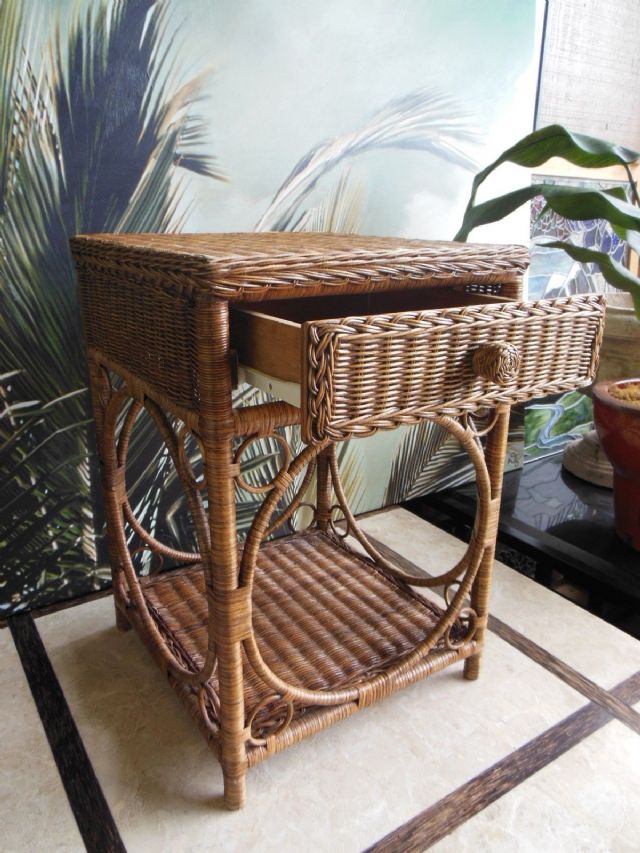 Wicker One Drawer Night stand measuring 17'' x 17'' x 25'' tall.