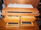''Golden Voice'' 1930's Motorola Radio/Jewelry Box is 14'' wide, 7 1/2'' deep, 7 1/2'' tall and has five drawers. The four larger drawers have an additional sliding shelf. This unit is made of Curly mango. Defiantly a ONE OF A KIND gift.