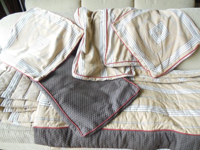 Custom made California King Duvet with five Pillow Shams and a coverlet.