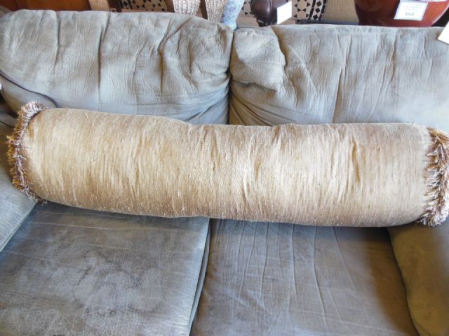 Gold silk Feather Bolster meaures 43'' long and is 10'' across.
