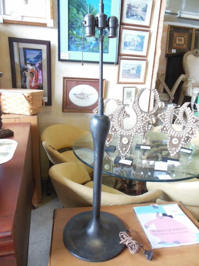 This very interesting Lamp is a Vintage ''Depose Electric Lamp'' made in France. It measures 37 1/2'' tall and the base is 12'' across. This is a very solid heavy metal lamp.