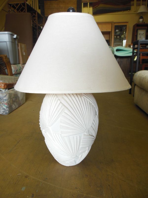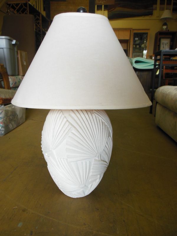 White Ceramic Lamp with Palm motif.
