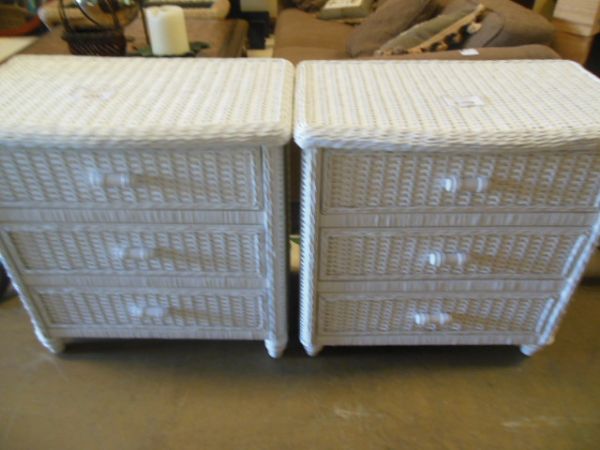Beautiful, brand new white wicker dresser. 3 drawers work smoothly on tracks.