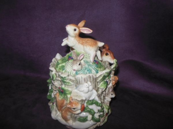 Rare, hard to find Fitz & Floyd Peaceable Kingdom Rabbits and Fawn Lidded Box. NIB.