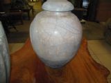 Large Evans Pottery Raku Ginger Jar with Crane Pattern and Lid.