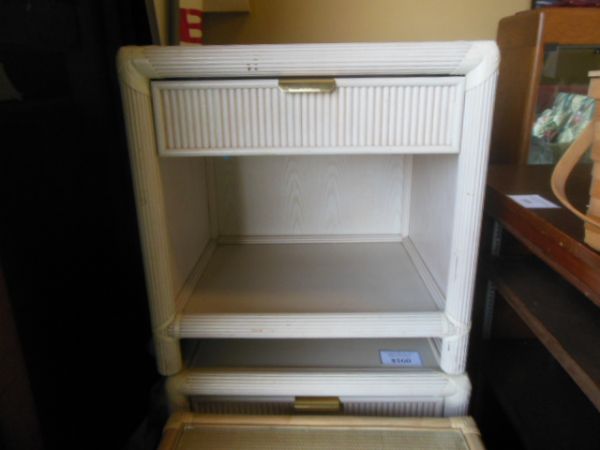 SET OF TWO - Whitewashed Rattan Nightstand.