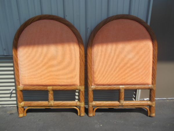 SET OF TWO - Rattan Frame Upholstered Twin Headboards.