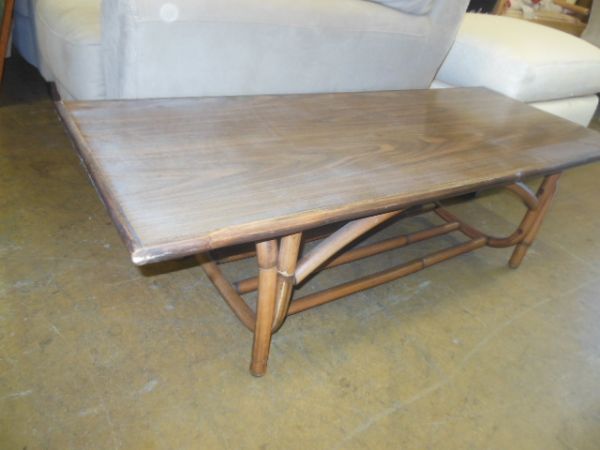 Low Wood and Rattan Coffee Table - 48 x 18.