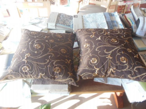 SET OF TWO - Embroidered Throw Pillows - Brown.