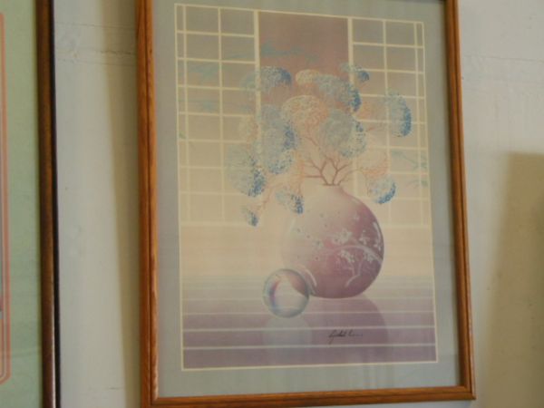 SET OF TWO - Pastel Asian Prints w/Flowers.
