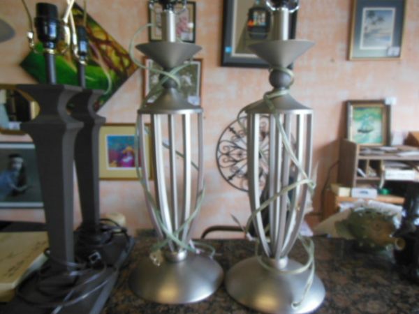 SET OF TWO - Brushed Nickel Contemporary Lamps - 31''H.