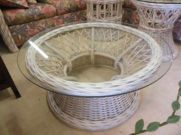 White Wicker/Rattan Coffee Table - 3' diameter.