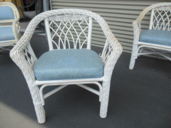 SET OF FOUR - White Wicker/Rattan Dining Chairs w/Arms.