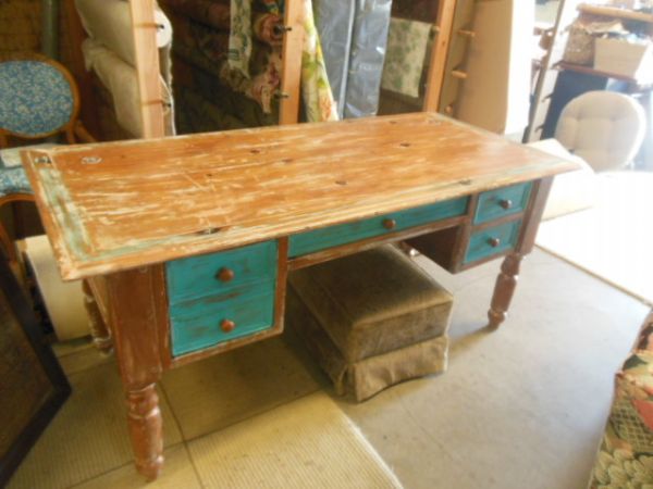 Shabby Chic Desk - Turquoise and White Distressed - Beachy!.