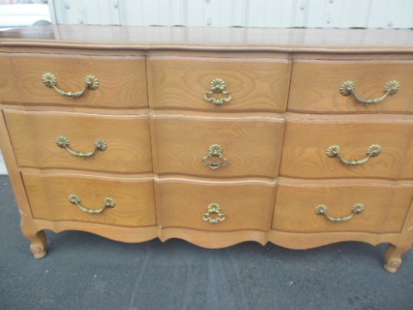 Bleached Blonde 9-Drawer Dresser w/Cabriolet Legs - Solid White Ash.