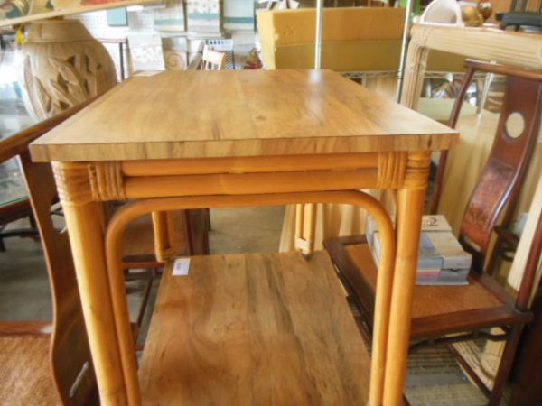 19''W x 25''D x 21''H Wood-look Laminate Top Rattan Base End Table.
