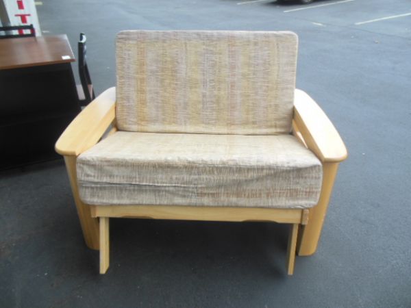 Convertible Solid Wood Twin Futon Chair w/Storage Arms and Magazine Racks.