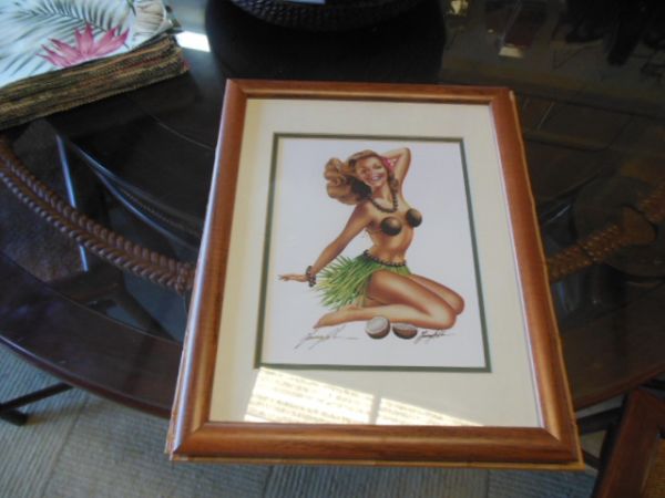 16.5'' x 13'' Garry Palm ''Coconut Girl'' - Signed in Koa Frame.